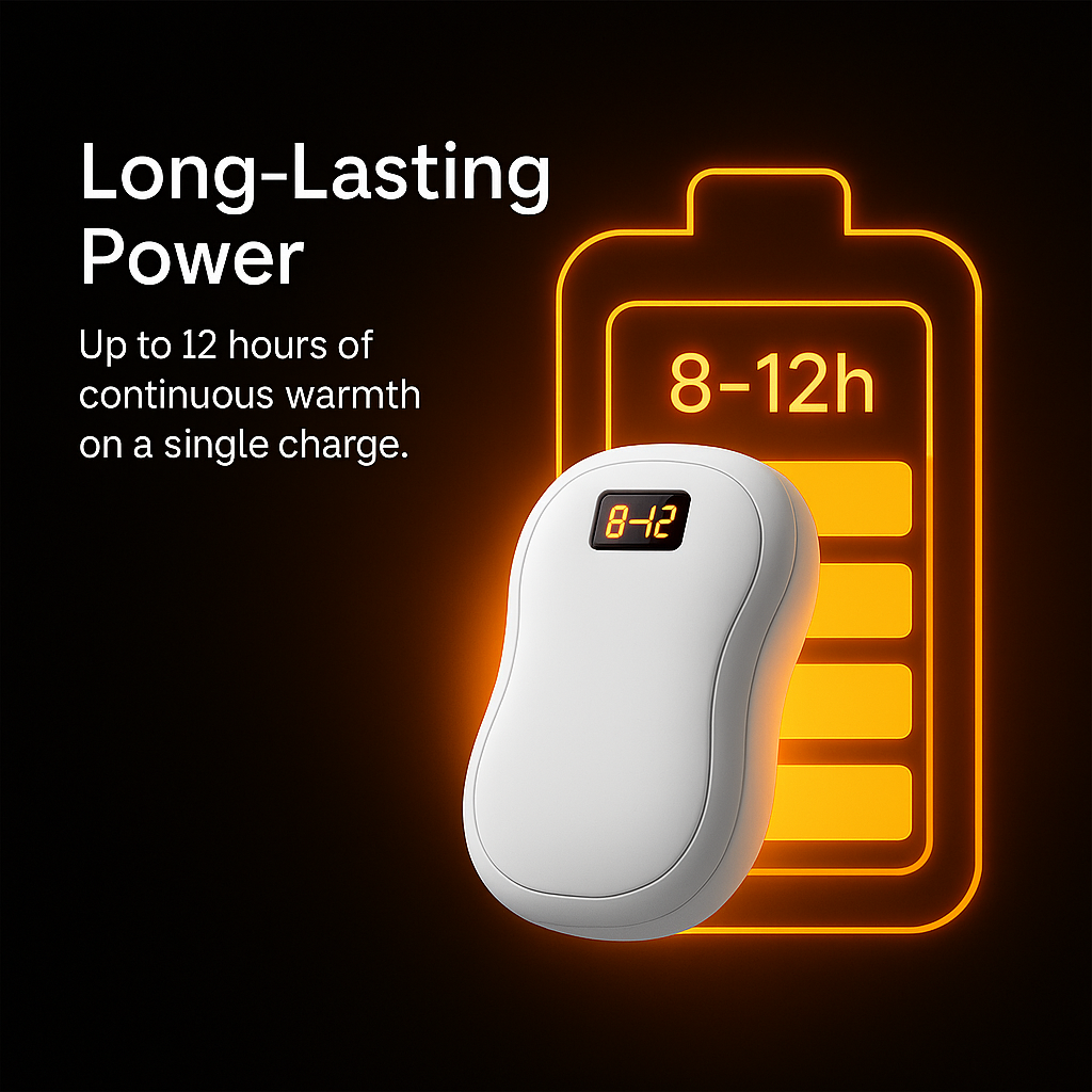 Enjoy 8–12 hours of continuous heat on a single charge.