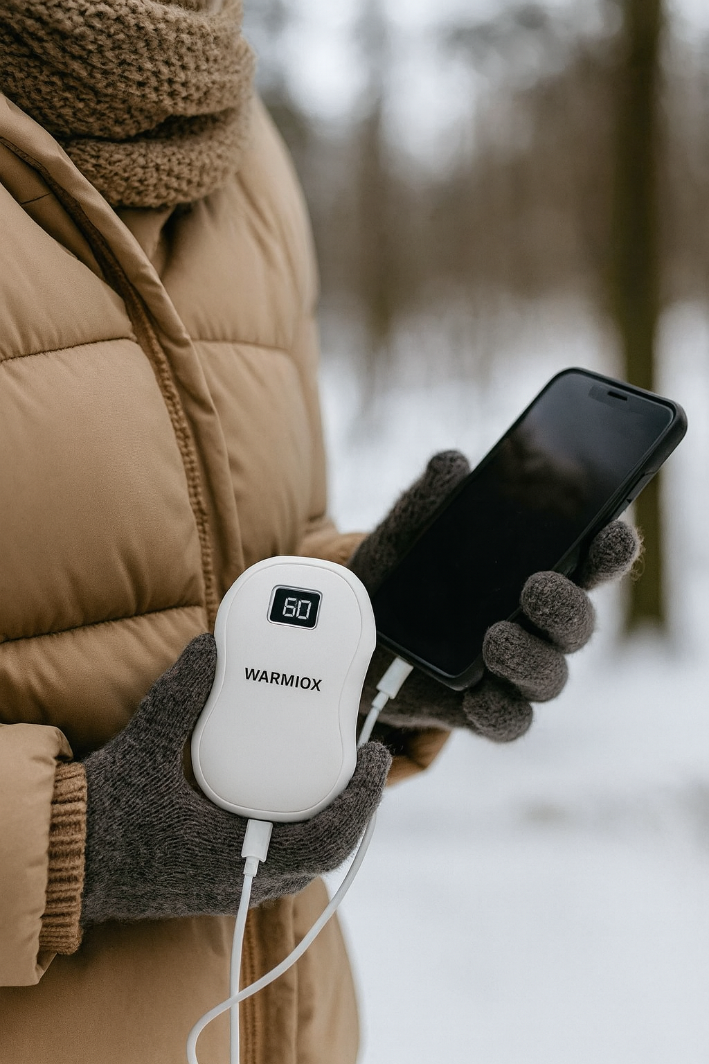 WARMIOX™ isn’t just a hand warmer — it also functions as a portable powerbank, allowing you to charge your smartphone, earbuds, or other USB-powered devices on the go.